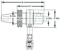73843 Flange: V Shank: 40 Hole Size: 3/4 in O.A.L.: 7.01 in Proj.: 4.44 in Gale Line Dia.: 1.75 in Diameter: 2.83 in A- Hole Size B- O.A.L. C- Proj. D- Gale Ln. Dia. E- Diameter