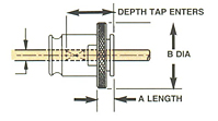77821 Drive Type: Non-Ball Drive Adapter Size: #1 Tap Size Range: 0 – 9/16 HT to 1/8 SS PT Shank Size: 1 in Proj.: 3.63 in Shank Length: 3 5/8 in Body Dia.: 1.37 in A- Shank Size B- Proj. C- Shank Length D- Body Dia.